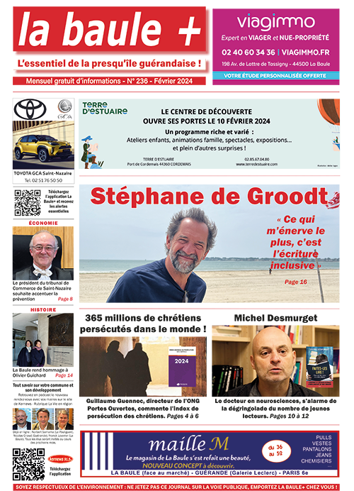 <a href="https://www.labauleplus.com/lire/2024/fevrier2024/index.html" target="_blank" rel="noopener"><img class="size-full wp-image-402 aligncenter" src="https://www.labauleplus.com/wp-content/uploads/sites/3/2024/01/fevrier2024.png" alt="" width="500" height="698" /></a> <p style="text-align: center"><a href="https://www.labauleplus.com/lire/2024/fevrier2024/index.html" target="_blank" rel="noopener noreferrer">Cliquez ici pour lire en ligne La Baule+ de Février 2024.</a></p> <p style="text-align: center"><a href="https://www.labauleplus.com/lire/2024/fevrier2024.pdf" target="_blank" rel="noopener noreferrer">Téléchargez le journal en PDF</a></p>