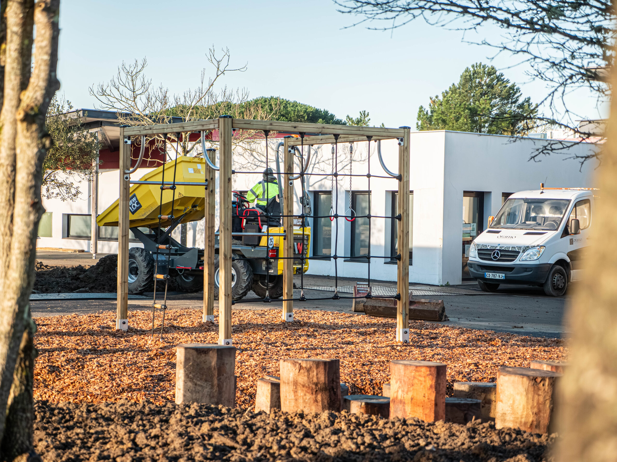 Les nouveaux aménagements incluent également des jeux et du mobilier en matériaux naturels — dont certains conçus et fabriqués directement par les agents de la Ville, une façon de donner une dimension humaine et locale au projet.